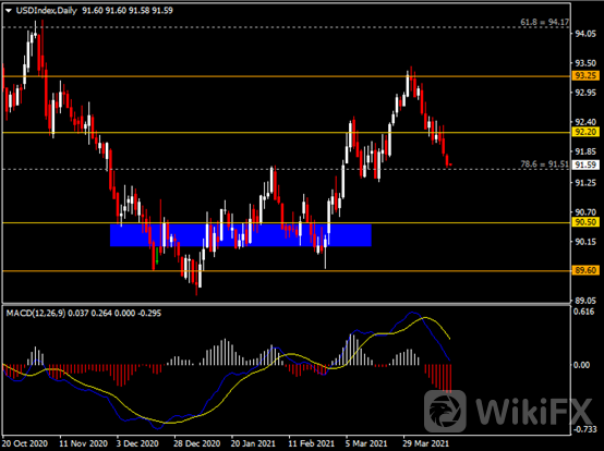 汇市方面,有消息指出美国共和党正探讨“精简版”基础设施计划。这意味着最终的刺激规模可能远低于2.25万亿美元。另外,主席鲍威尔表示大多数美联储官员认为2024年不会加息,并且央行将考虑 “先减少购债,后提高利率” 的政策。截至收盘,美元指数录得下滑约0.2%,报91.59。