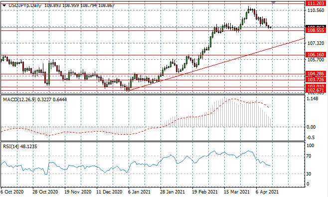 The USDJPY reversal may only go so far as the 108.55 support level as bearish momentum appears to be waning. The support area has represented an obstacle for buyers in the past. Momentum indicators have sharp downward trajectories.