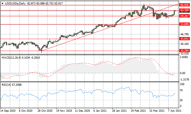 USOUSD buyers returned in yesterday‘s trading allowing the commodity to fully break the $60 per barrel barrier. Today’s trading will determine whether there is enough bullish momentum to drive price action back towards a recent ceiling at the 66.92 price level. Momentum indicators have upward trajectories.
