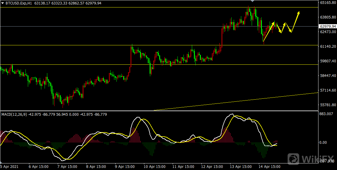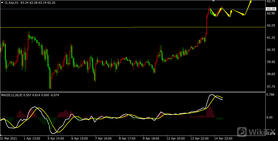 从WTI原油1小时图来看,原油周三美盘已上破,目前是等待回踩接多,但以现在的回踩情况看,低点难以下降,横盘调整的概率很大,接下来还需再等一至两个低点,若还徘徊于63美元附近,则在此接多。
