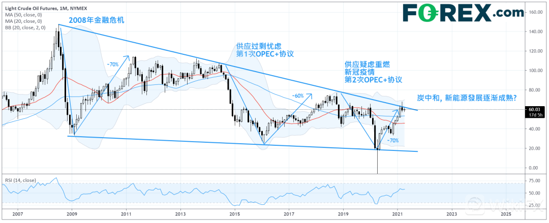 然而,美国原油的长线下降趋势提醒市场,价格展望不宜过份乐观。事实上,新能源的迅速发展对油价的基本面一直构成负面影响。