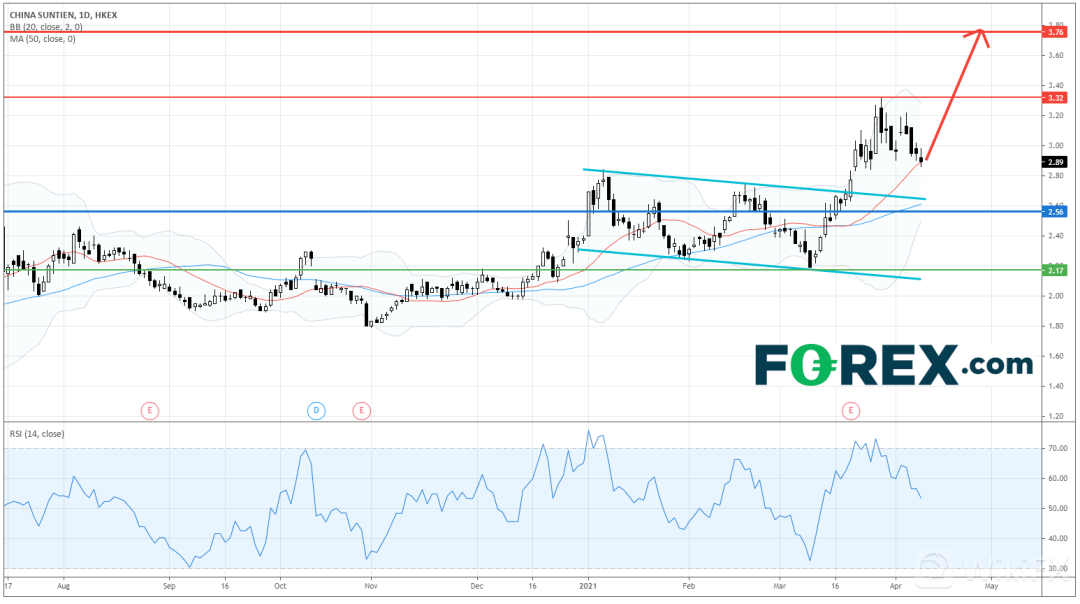 看涨的投资可将3.80港元视为主要支持(止损)位,上行目标在4.70港元及4.90港元。