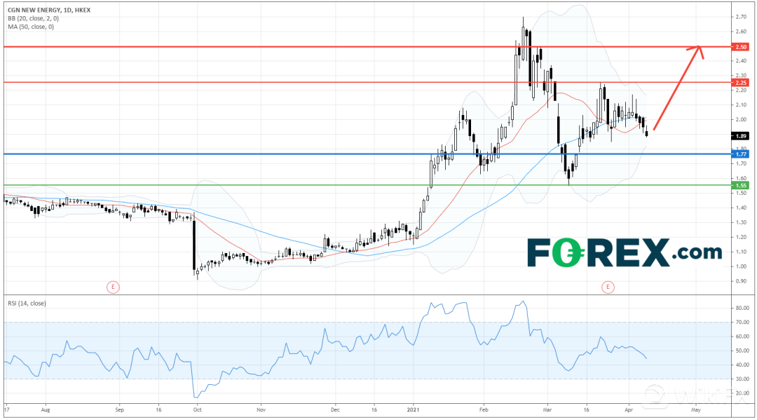 投资者应视1.77港元为主要支持(止损)位,2.25港元和2.50港元则是上方的阻力位。