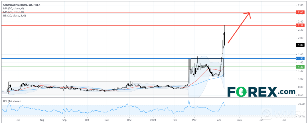此外,重庆钢铁上周公布,预期第一季股东应占净利增长258.8倍至10.8亿元人民币。