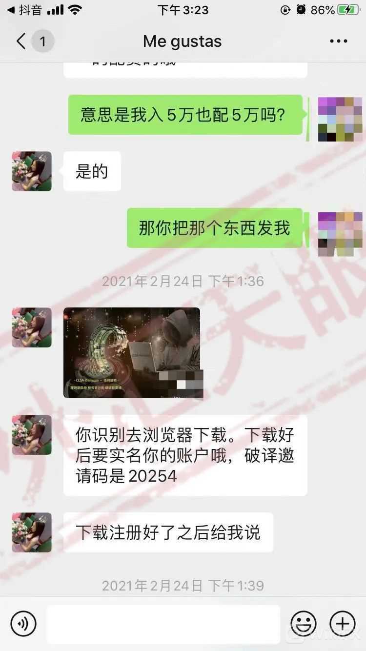 事后,通过外汇天眼的客服告知,傅先生才知道自己下载使用的是假冒CLSA Premium之名的虚假投资诈骗软件。