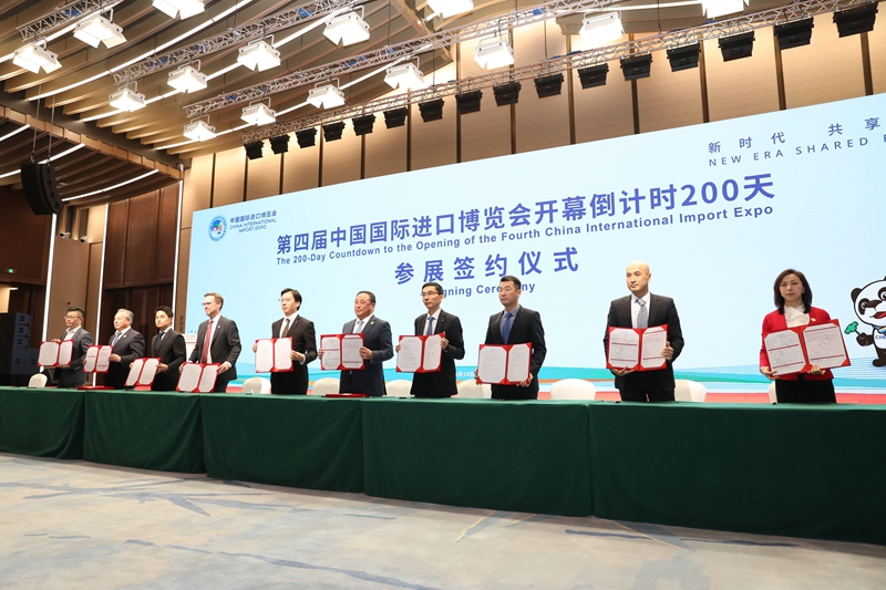 当日,第四届中国国际进口博览会开幕倒计时200天宣介活动在国家会展中心(上海)举行。第四届进博会将继续发挥国际采购、投资促进、人文交流、开放合作“四大平台”功能,强化国内大循环为主、国内国际双循环相互促进的“窗口”作用,目前各项筹备工作正稳步推进。  新华社记者 方喆 摄