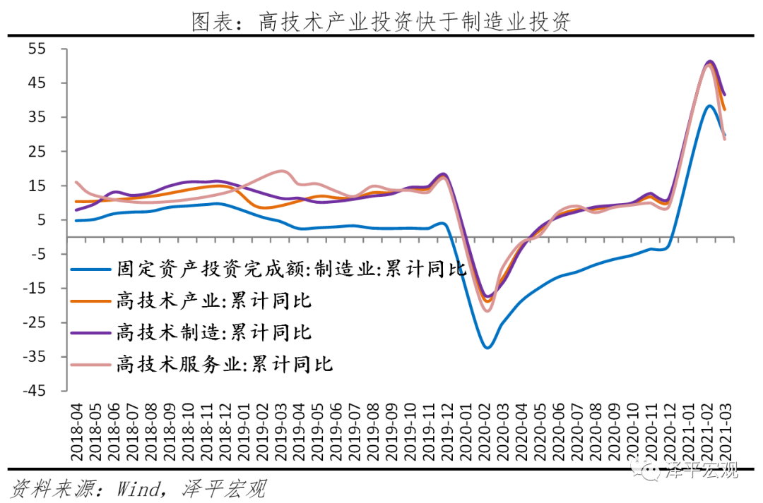 2)欧美外需持续修复,高新技术和机电出口维持高速增长。3月全球综合PMI为54.8%,美、欧、日制造业PMI分别为64.7%、57.9%和51.4%;海运需求旺盛,3月中国出口集装箱运价综合指数(CCFI)平均值为1913.6,而去年同期仅为898.7;3月中国对欧、美出口同比分别为53.3%、45.9%;3月中国高新技术产品、机电产品对外出口增速分别为34.9%和35.4%。