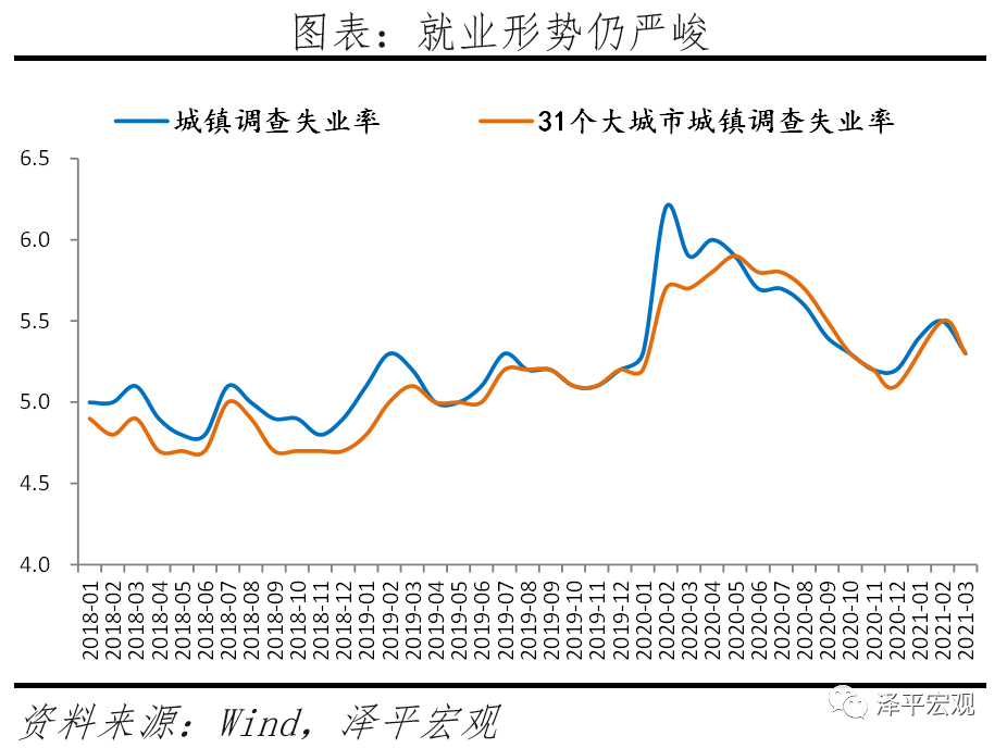 一季度GDP增长18.3%,两年平均同比增长5.0%,较2020年四季度下滑1.5个百分点;季调环比增长0.6%,较2020年四季度下滑2.6个百分点,动能放缓。