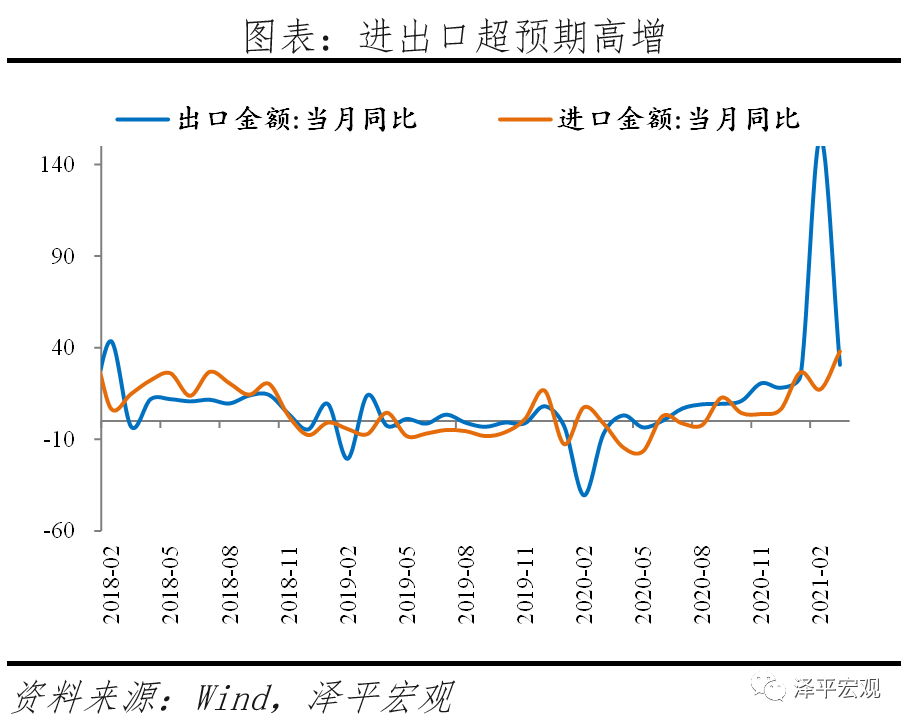 3月中国出口(以美元计)同比增长30.6%,尽管较存在低基数效应的1-2月下滑30.0个百分点,但仍处于近年来高位。
