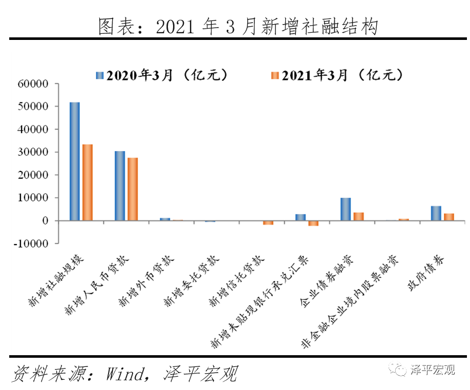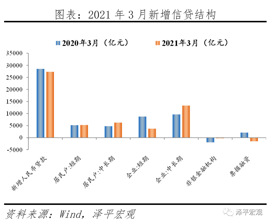 从信贷结构看,实体投融资需求强劲,企业和居民中长期贷款仍是主要支撑。3月新增企业贷款1.6万亿元,同比少增4500亿元;短期贷款、中长期贷款、票据融资分别少增5004亿元、多增3657亿元、多减3600亿元。3月新增居民贷款11479亿元,同比多增1614亿元;短期贷款增加5242亿元,同比微增98亿元;中长期贷款增加6239亿元,同比多增1501亿元。