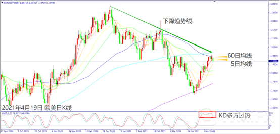 上周除了阿斯利康之外,强生新冠疫苗也传出血栓事件,若本周持续造成欧美第三波疫情攀升,留意避险资金回流推升美元和美债收益率上涨,可能造成欧美和镑美出现回调。本周关注美国国会讨论基建计划,若计划可以持续带动美国经济增长,有望见到美元重新回到多方涨势。周四聚焦欧元利率决议,若受到第三波新冠疫情影响,提出鸽派宽松货币,可能造成欧美和镑美转跌。