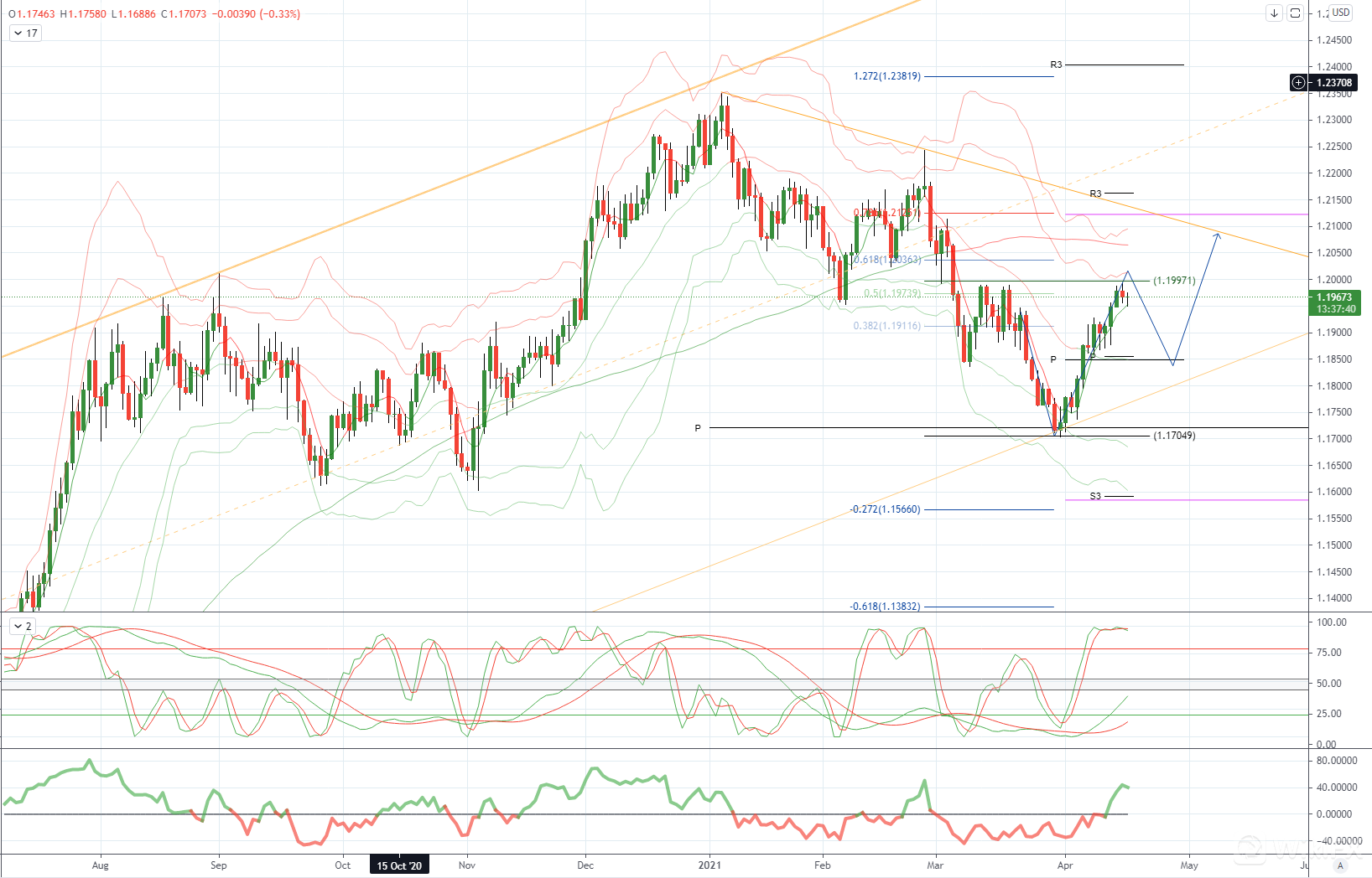 EURUSD 日内偏差 : 看跌下方1.1880看涨上方