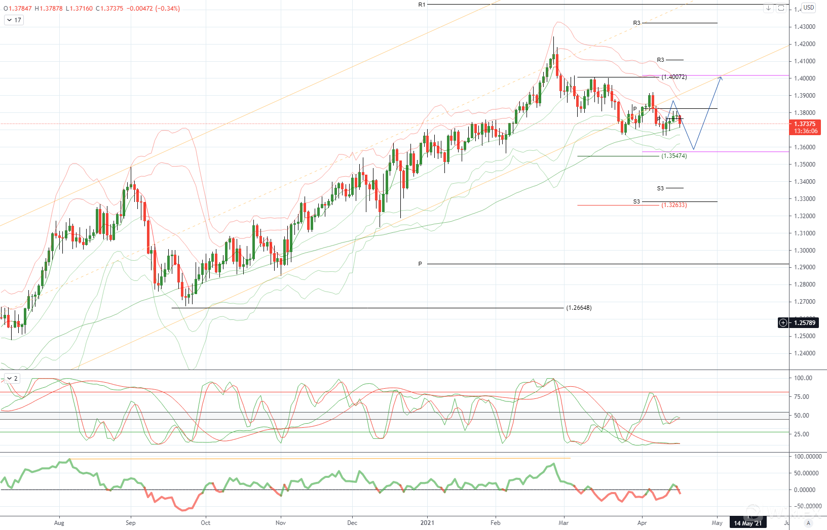 GBPUSD 从技术和交易角度来看,由于1.3910包含上行尝试,因此有一个窗口可以测试下行均线目标1.3550。 收盘达到1.39可能表明当前修正已经完成,重新测试了1.40报价