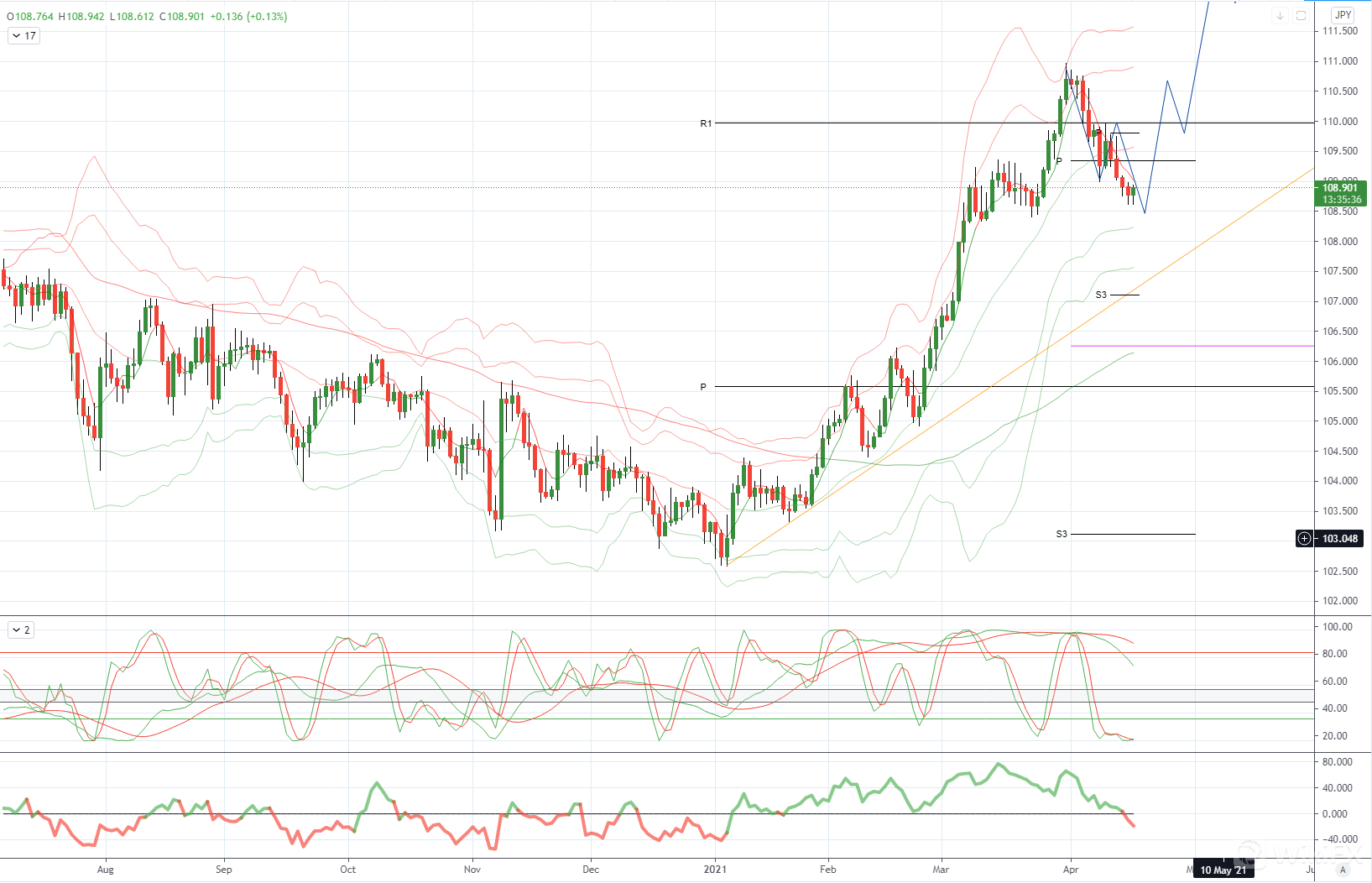USDJPY 日内偏差: 高于109目标看涨112