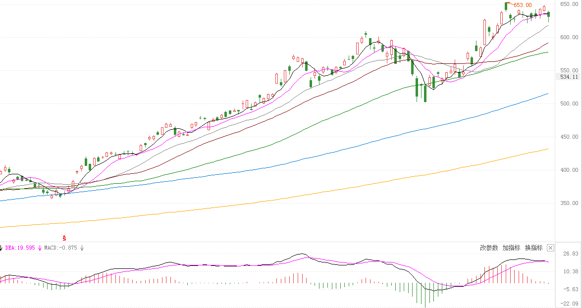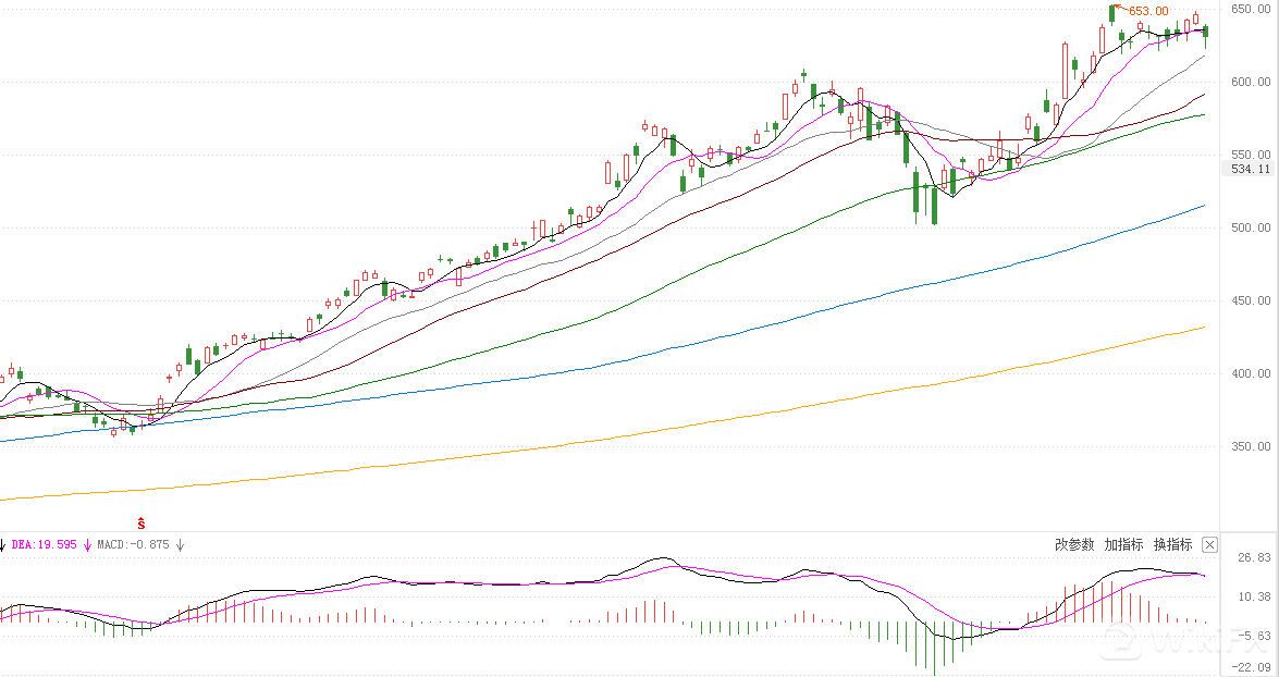 股价方面,目前在630美元的历史新高附近, PE在60.05倍左右,PB在15.39倍左右,看起来并不是非常贵。按照DCF法来估值,假设其未来5年的增长率为20%,永续增长率5%,其合理估值大概在2836亿美元附近,这表明目前的股价已经来到合理区间。投资者需继续关注其业绩情况,如有超预期的业绩或许其股价还有上升空间,但如低于预期,或许有整理;长期是非常不错的公司。