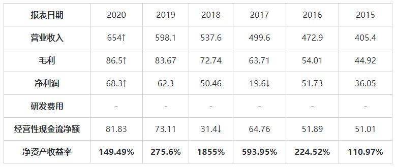 财务数据方面,2015年到2020年,其营业收入从405.4上升至654亿美元;净利润从36.05上升至68.3亿美元,营业收入上升了61.1%,利润上升了89.44%,利润上升幅度远大于其收入上升幅度,这也表明过去几年其经营效率一直在提高。另外,其经营性现金流基本上是保持稳步上升,这表明其利润真实可靠。从2020年的经营业绩来看,营业收入和利润均实现了稳步增长,其中,销售额为654亿美元,同比增长9.34%。净利润为68.3亿美元,同比增长9.68%。另外,其经营性现金流净额也同比上升,整体来看,公司相当不错。