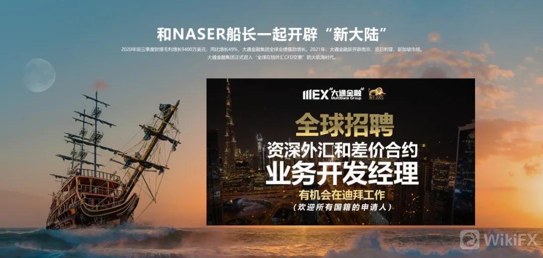 大通金融是MultiBank Group 旗下公司,在全球范围内服务于来自90个国家的280,000多个客户,是全球最大的在线金融衍生品提供商之一。集团领导人Naser Taher先生拥有“全球最具影响力50人”荣誉,是一位具有全球视野的睿智领袖。在他的带领下,大通金融集团在全球范围内已成功设立20余个办事处,布局全球。