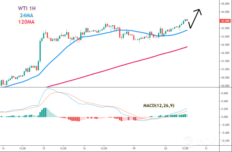 美油(WTI)一小时图 –24MA、120MA及MACD指标