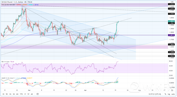英镑兑美元逼近历史重要阻力位1.4000。