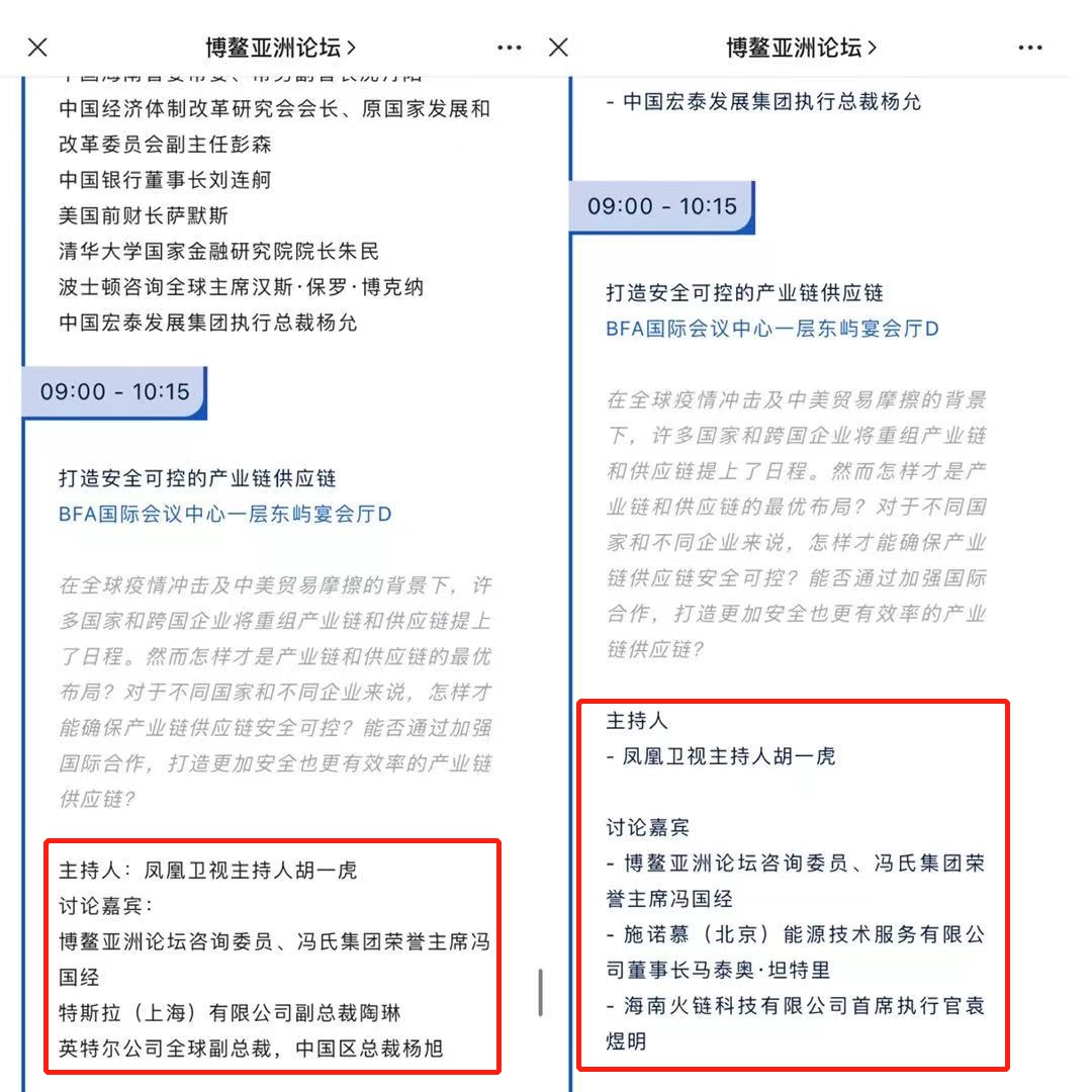中新经纬记者注意到,车展维权事件发生在19日,而由博鳌亚洲论坛官方微信号在18日发布的日程最终版中,就已经没有陶琳的名字,“打造安全可控的产业链供应链”分论坛的嘉宾也都换成了其他人。陶琳的名字最后一次出现是在17日下午发布的日程里,而在17日晚发布的嘉宾阵容名单里已经没有她的名字。