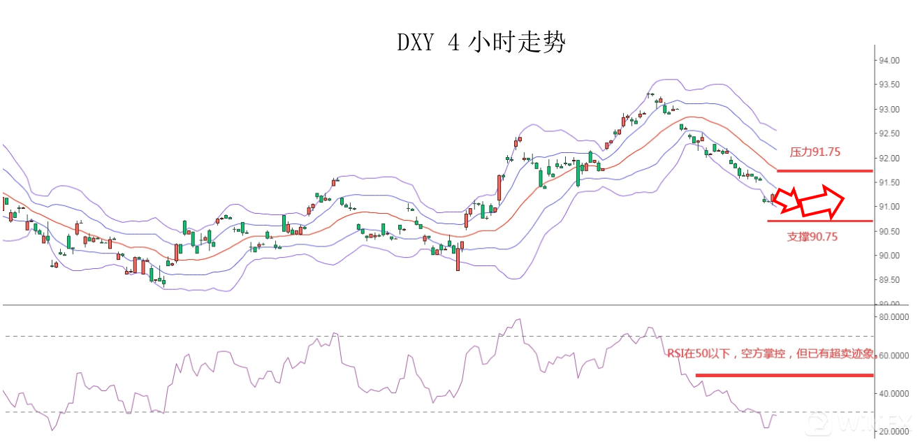 美元方面,周二,美元指数止跌反弹上涨0.12%,主要是因近期美元指数下跌幅度较大超跌反弹。不过,随着美国国债收益率的下跌,以及美联储收紧货币政策的速度可能比市场预期的要慢,美元指数的涨势也受限。整体来看,短线美元指数仍然承压,但下行空间已经相当有限,极短线上仍有技术性反弹需求。