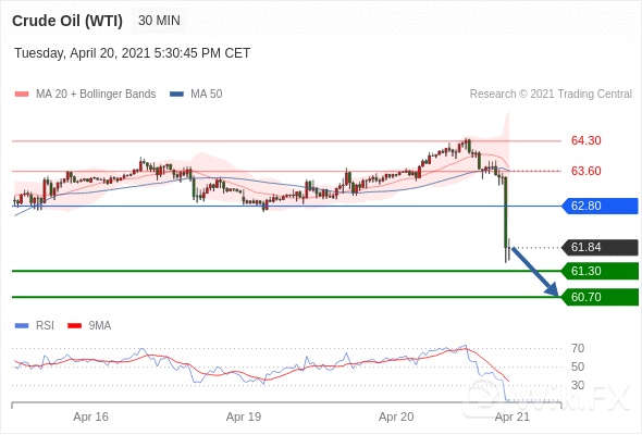 原油(WTI)(M1)当日内: 存在压力。转折点:62.80 交易策略:在 62.80 之下,看跌,目标价位为 61.30 ,然后为 60.70 。 备选策略:在 62.80 上,看涨,目标价位定在 63.60 ,然后为 64.30。 技术点评:RSI技术指标看跌,有进一步下降空间。