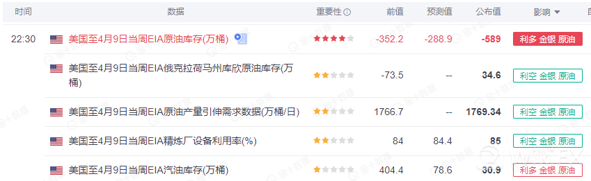 数据解读:上周EIA数据中,实际公布值为减少589万桶,原油库存大幅减少,表明市场原油需求量增加,且数据连续七周逐步下降,上周EIA数据公布后,原油大幅冲高,点点原油上行基调。