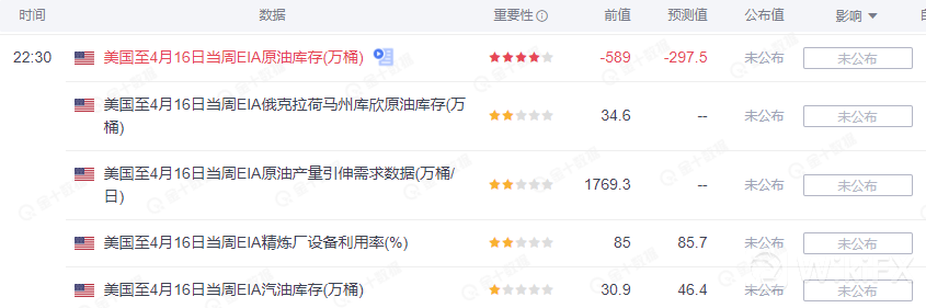EIA原油库存(excluding the Strategic Petroleum Reserve)数据是由美国能源资料协会(EIA)是美国能源部下属的能源信息署统计公布的。该数据每周公布一次,正常情况下北京时间周三晚间10:30,冬令时11:30公布,此数据主要显示了美国当周原油库存数量,对于原油及原油提炼品(汽油、柴油、柏油等)有较大影响。目前市场进入夏令时,原油EIA数据将在晚间22:30公布。
