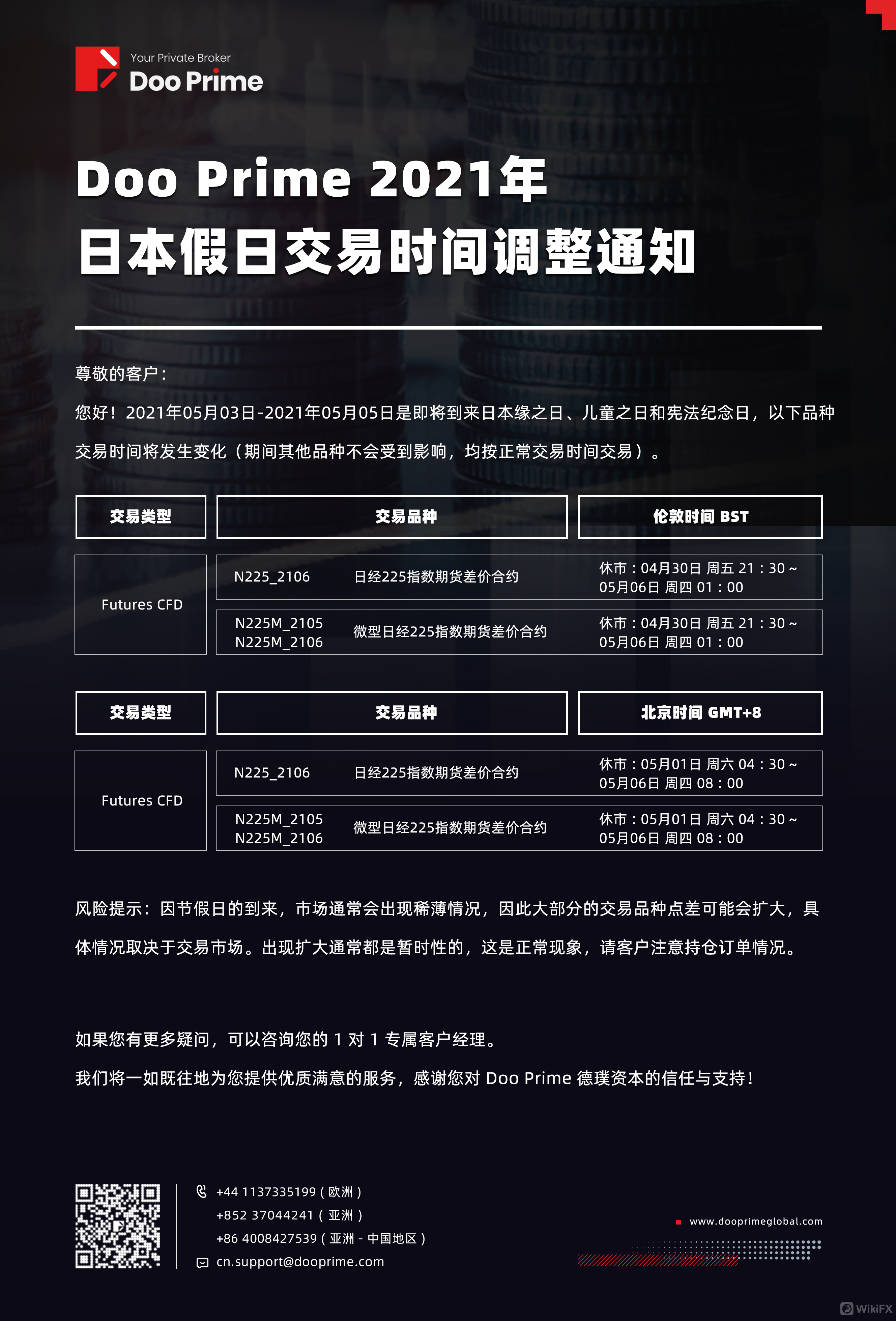 Doo Prime 2021年日本假日交易时间调整通知