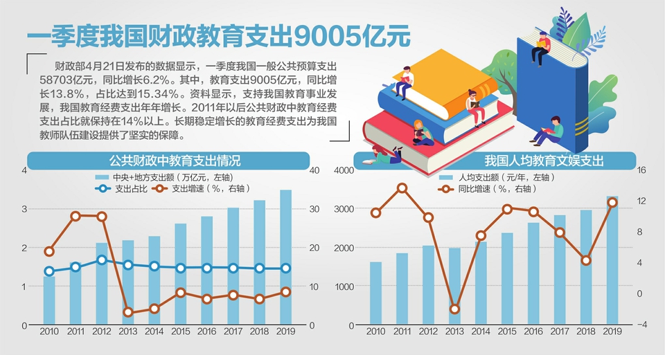在财政支出方面,一季度,全国一般公共预算支出同比增长6.2%,“三保”等重点支出增长较快。其中,教育、卫生健康、社会保障和就业支出分别增长13.8%、8.3%、6.1%。
