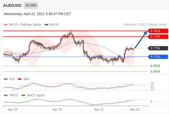 转折点: 0.7725看涨,当 0.7725 为支撑位。