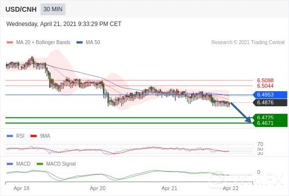 如突破 6.4953 ,USD/CNH 目标方向为 6.5044 和 6.5098 。