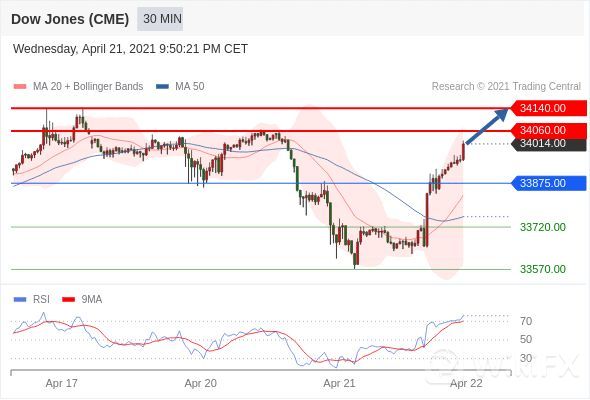 RSI技术指标超过50。MACD技术指标处在其信号线之下 看多。此外,价位高于其20个时期及50个时期移动平均线 ( 分别位于 17230.70 和 17151.32 )。