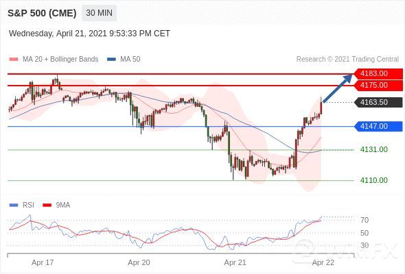 看涨,当 17157.50 为支撑位,目标定在17422.50。