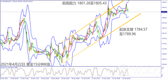 日级别线图,长阳烛突破前三日盘整高点,若震荡守住5日均线,有望突破1800关口;15分钟K线,短线出现上升矩形,若守住起涨支撑,可能挑战前高阻力。
