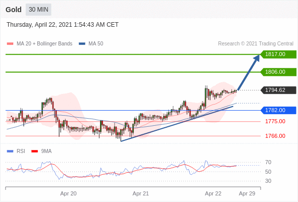 在 1782.00 之上,看涨,目标价位为 1806.00 ,然后为 1817.00 。