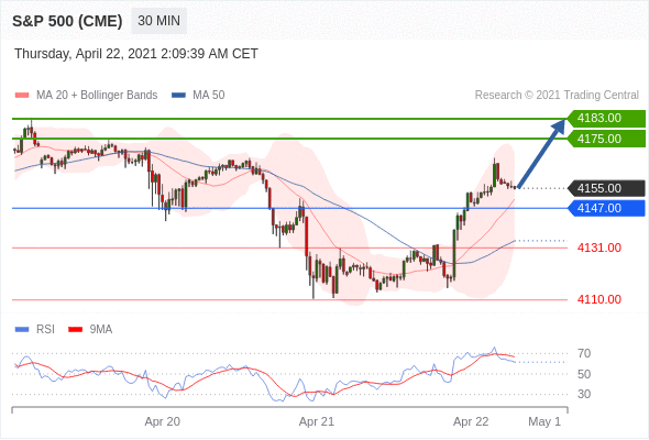 在 4147.00 之上,看涨,目标价位为 4175.00 ,然后为 4183.00 。