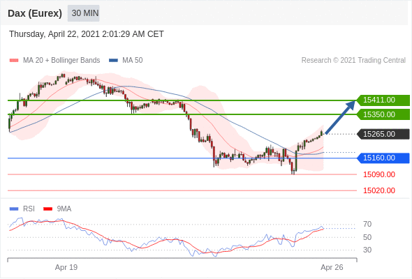 在 15160.00 之上,看涨,目标价位为 15350.00 ,然后为 15411.00 。