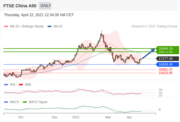 如跌破 16608.46 ,FTSE China A50 index 目标方向定在 15991.37 和 15623.85 。