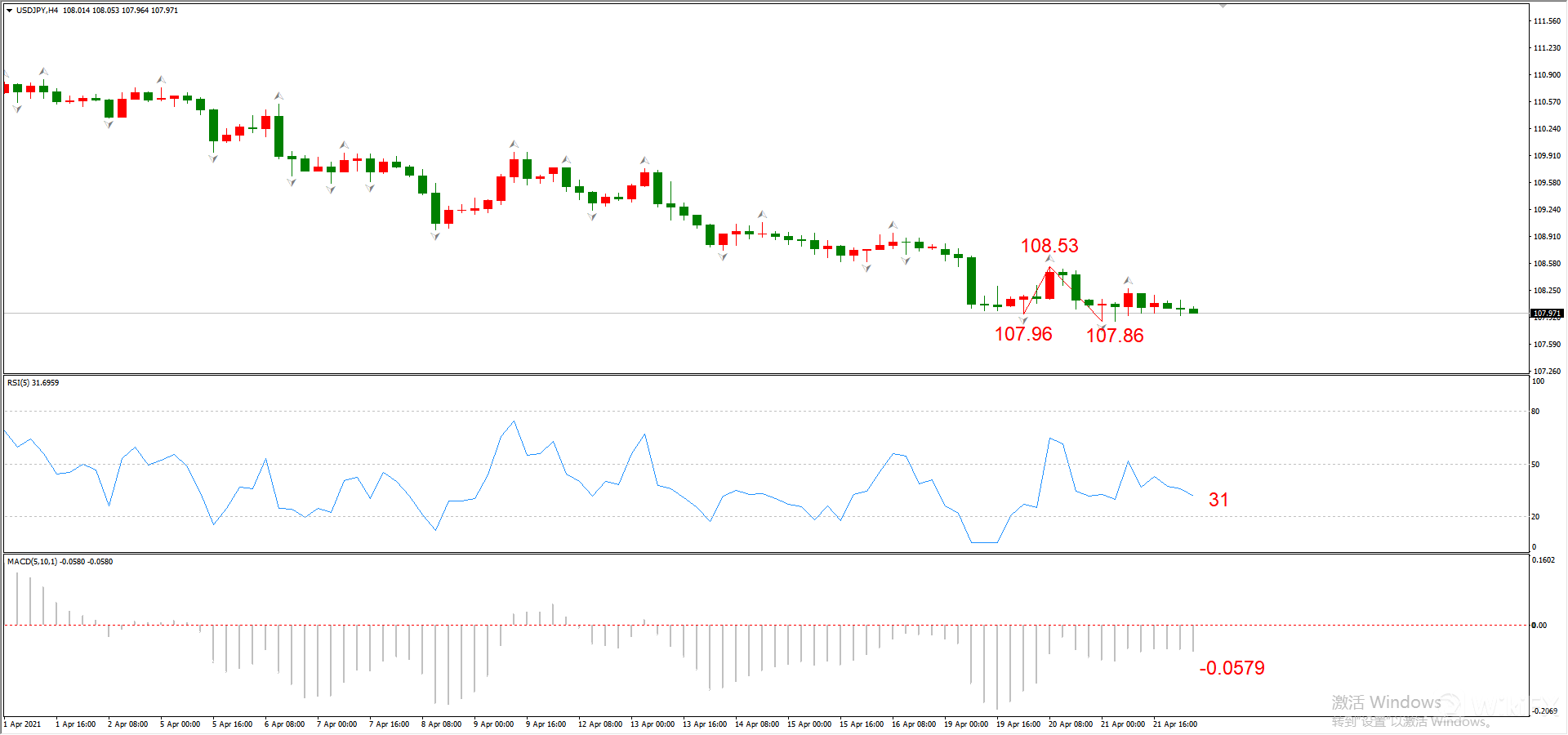 最新勾形:107.96~108.53~107.86,突破勾形