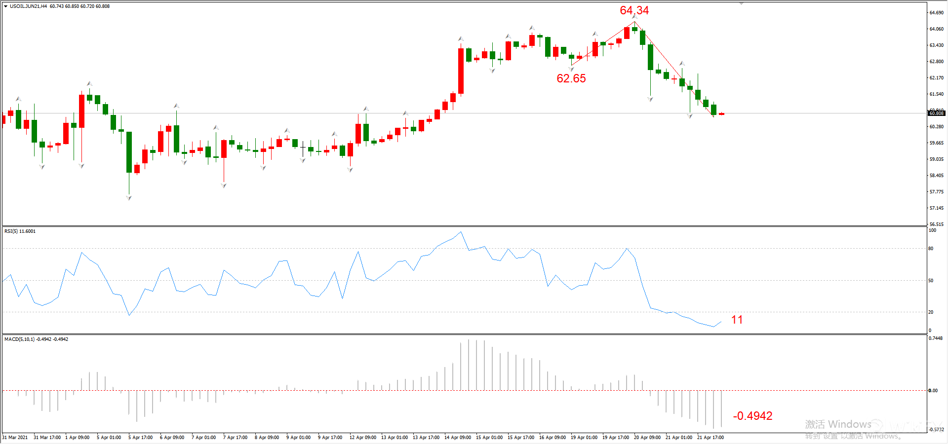 图5,USOIL 2021年5月合约,04月22日 H4周期-ATFX