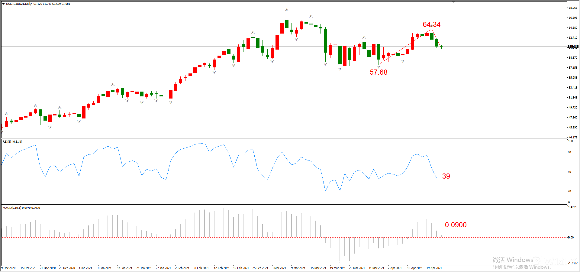 图5,USOIL 2021年5月合约,04月22日 日线周期-ATFX