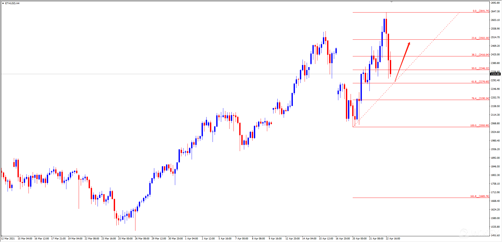 【技术点评】:H4周期,以太坊冲高回调,周内考虑关键斐波那契回调位做多。
