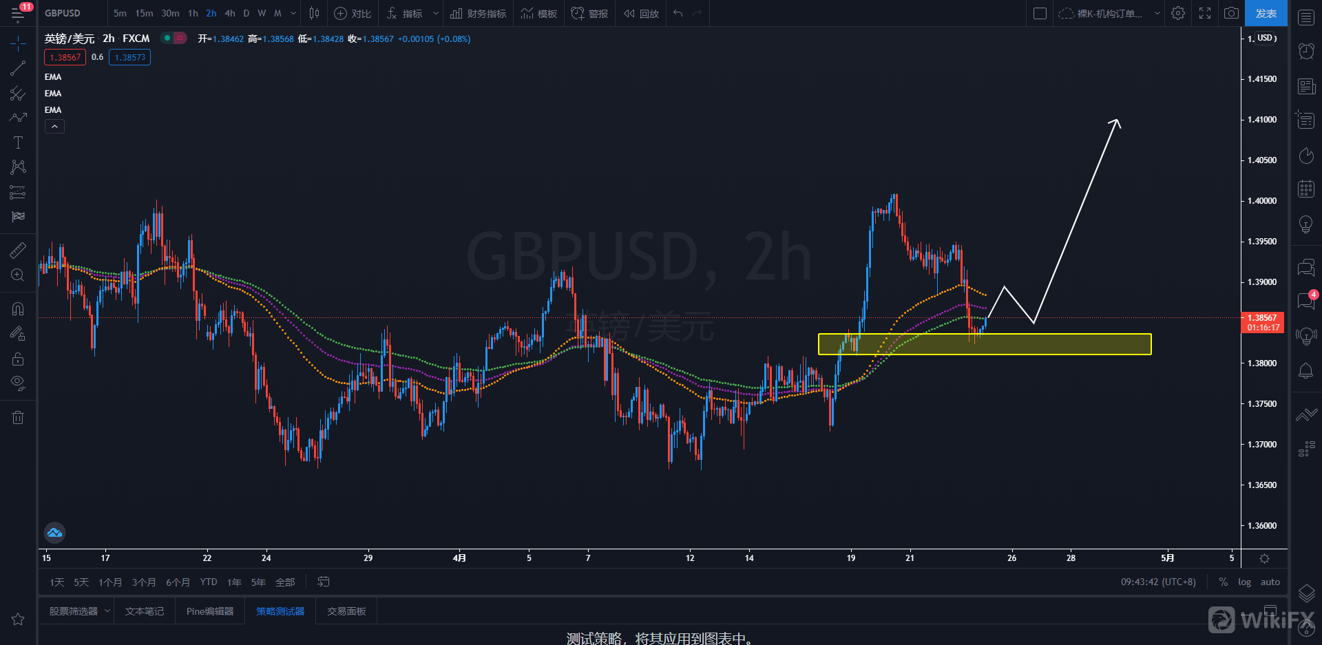 策略解析:英镑2小时级别价格回踩下方需求区后开始慢慢出现企稳迹象,整体上升形态保持良好,后市或将继续上行,依然保持逢低买入的思路。日内关注价格在1.3850附近运行的机会,可择机直接逢低买入英镑,上看目标1.4100一线附近。