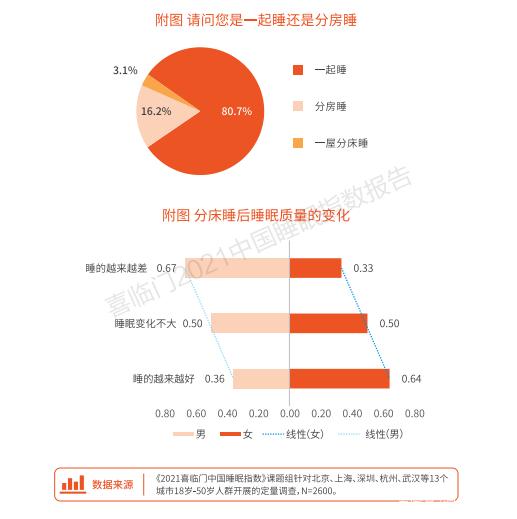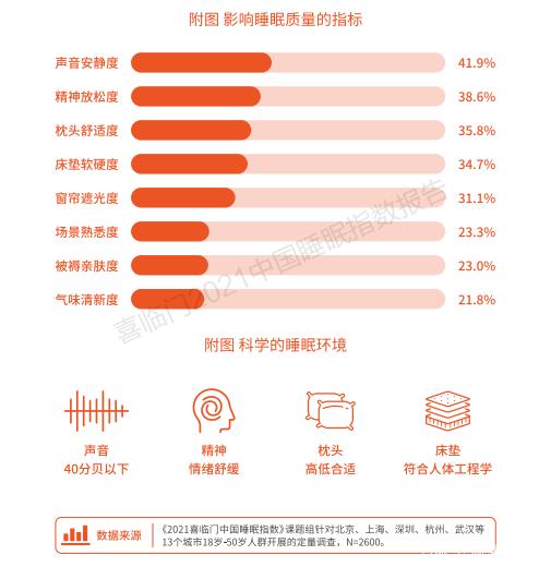 本文相关数据与结论,均摘自《2021喜临门中国睡眠指数报告》,该《报告》结合国内外睡眠科学领域的最新研究成果,由喜临门联合中国睡眠研究会共同发布,中国趋势营销服务创新机构知萌咨询作为调研机构,中国医疗健康专业知识智享平台《健康界》作为战略支持媒体,巨量引擎、春雨医生、蜗牛睡眠、咕咚运动等领先的互联网平台为协同支撑,深入分析12.8亿次国人睡眠行为,形成后疫情时代覆盖人群最广泛的中国人睡眠画像。