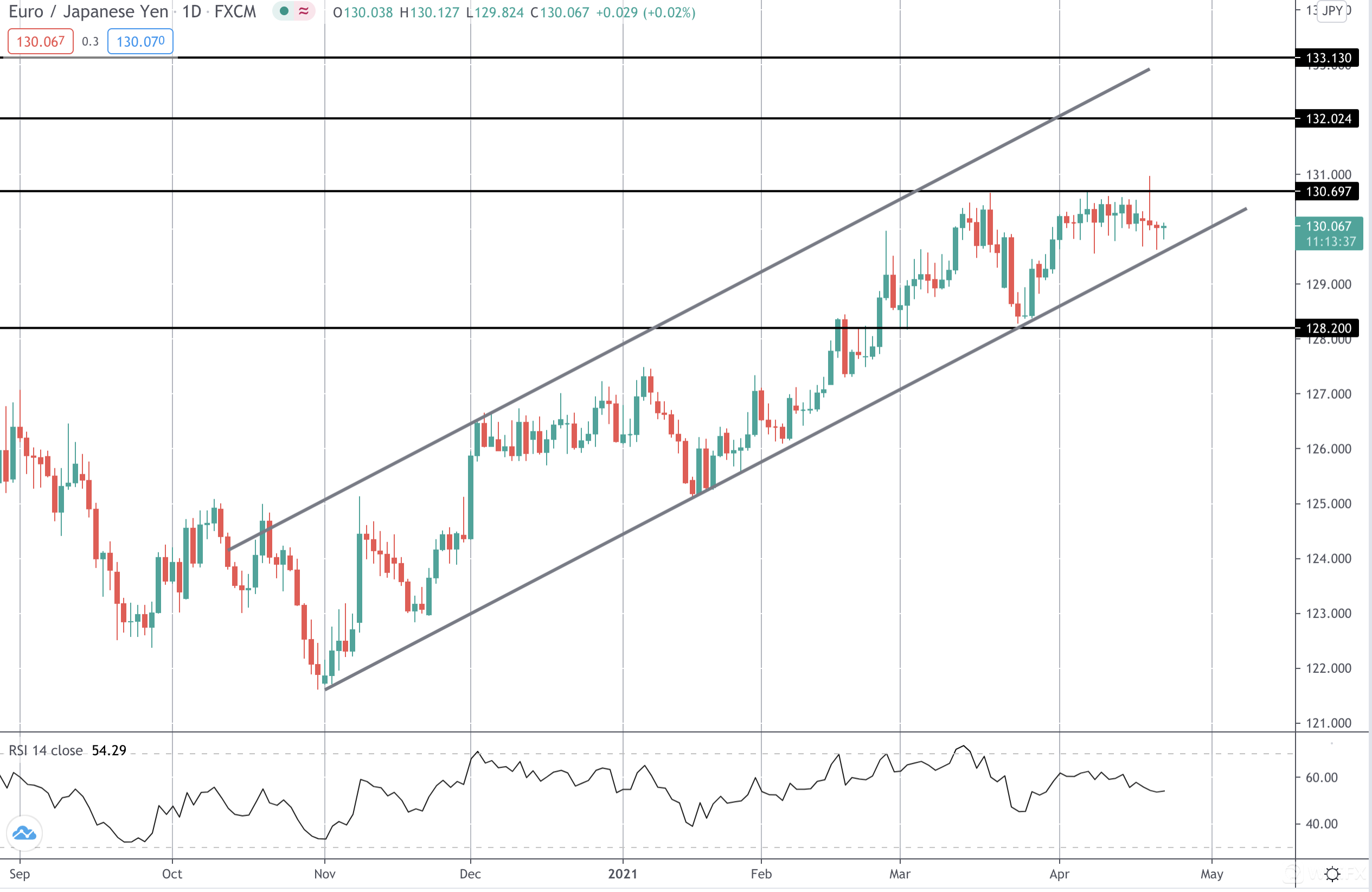 这对仍然感觉像渴望突破更高。 价格一直停留在130.69水平以下的盘整中,最近突破该水平失败。 然而,没有任何抛售得以实现,在多头通道保持不变的情况下,升至132.02的水平仍然看起来不错。