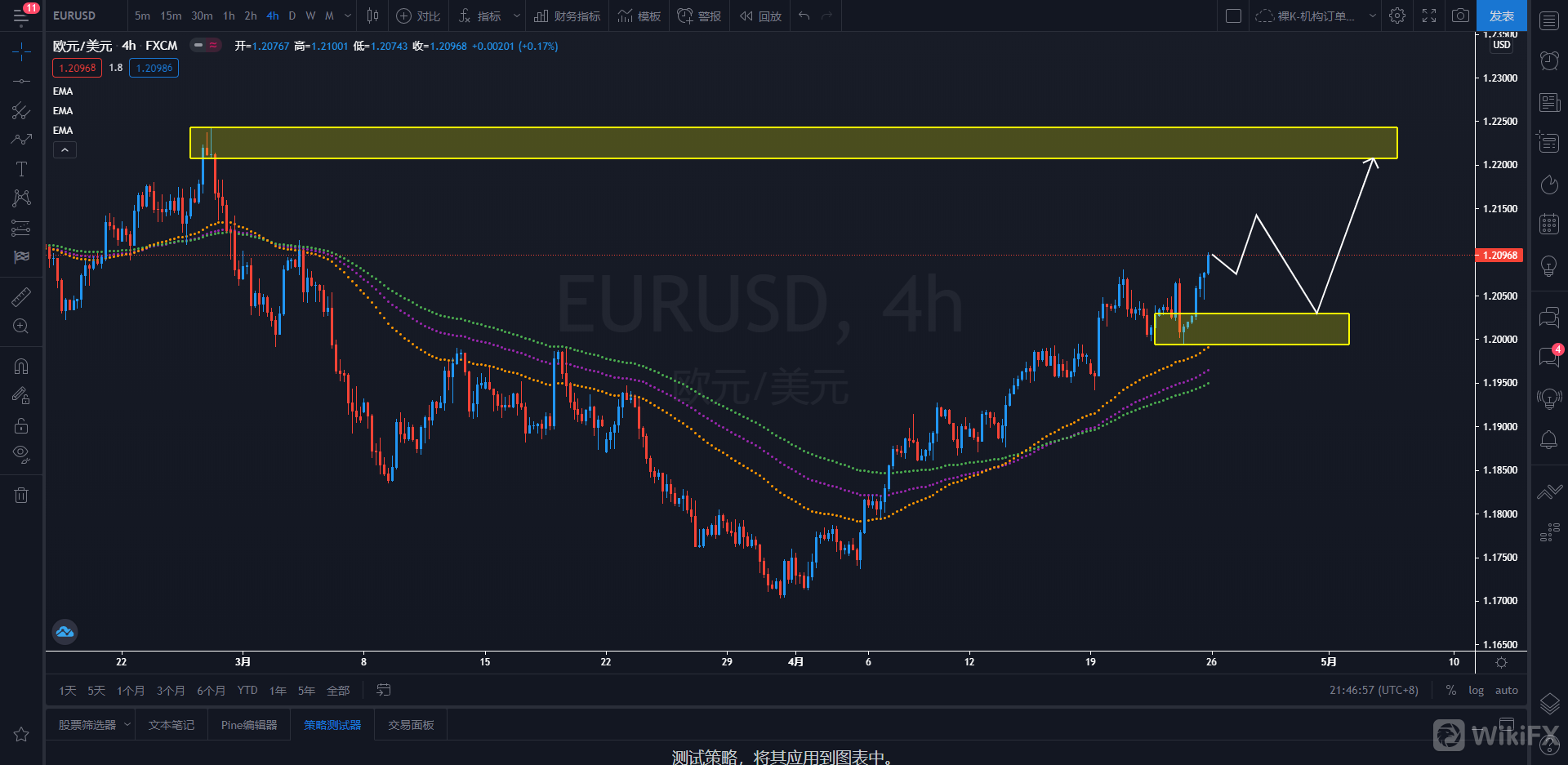 策略解析:欧元4小时级别价格继续保持在均线系统上方运行,后市或将可能继续延续上行趋势。日内关注价格再次回踩1.2030-1.1995区域附近的机会,可择机逢低买入欧元,上看目标1.2125、1.2205一线附近。