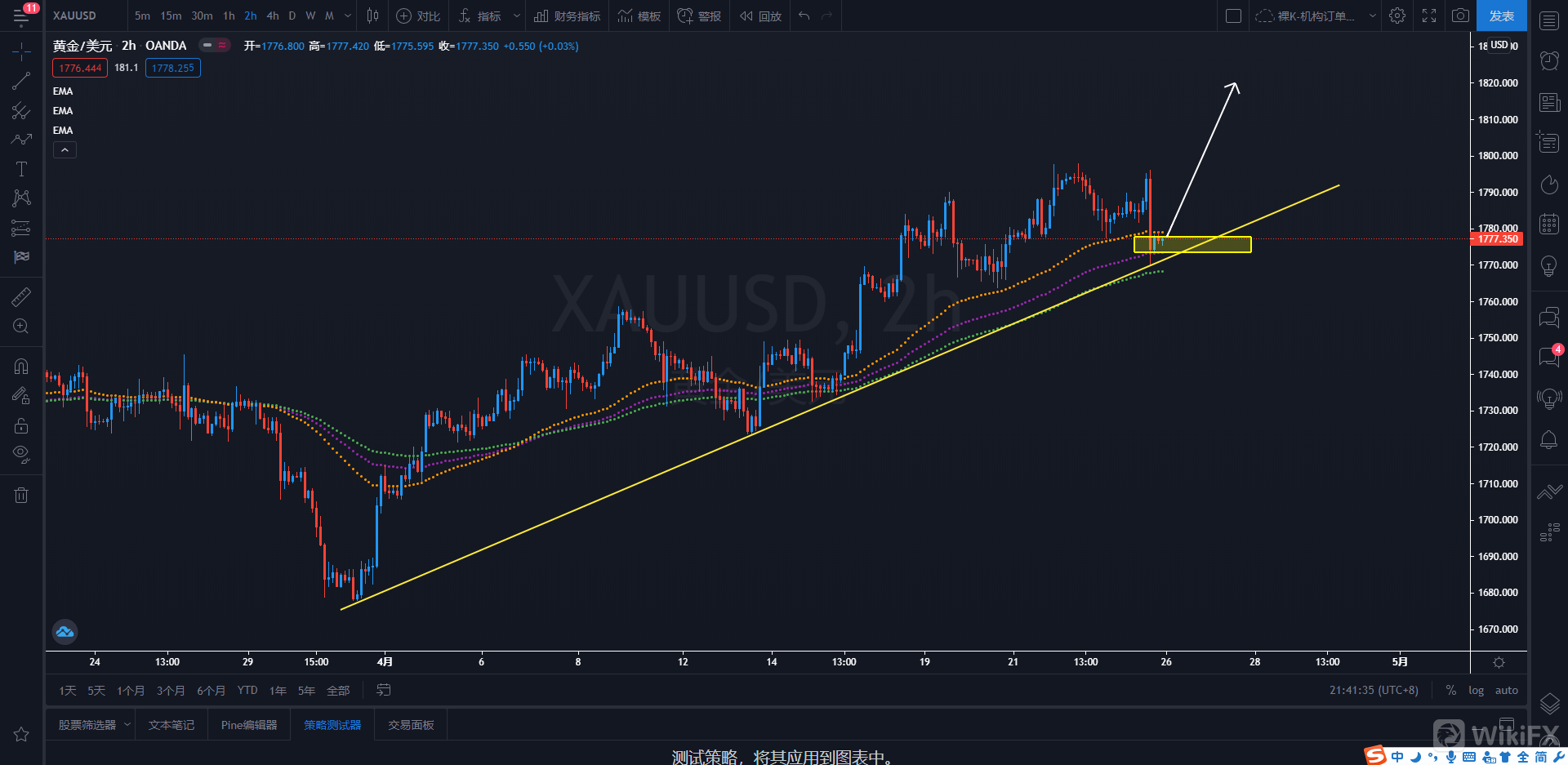 策略解析:黄金之前已强势突破大型双底颈线位置,均线系统也已经多头排列,并且已呈现向上发散的趋势,因此,后市黄金或将继续维持上行走势,以逢低买入为主。日内关注价格在1778-1773.50区域逢低买入的机会,上看目标1810、1830一线附近甚至更高。