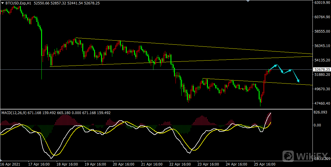 从比特币1小时图来看,比特币新低后被以涨吞没的态势拉起,这对一小时级别来讲是反转信号之一,但第一波也存在着假突破的概率,所以后面的回踩将非常重要,如果是弱回踩,第二轮拉升还要再上破,如果再以同样的力度下跌,则真要注意假突破问题。