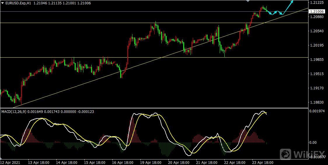 从欧元兑美元1小时图来看,欧元兑美元已再次走出新高点,刚下破趋势线被拉了回来,最重要的是低点没有下破,后市还要继续做多,未来的反转信号仍然是趋势线和低点下破为准。